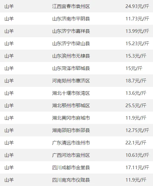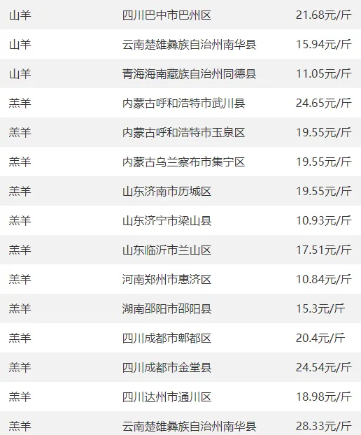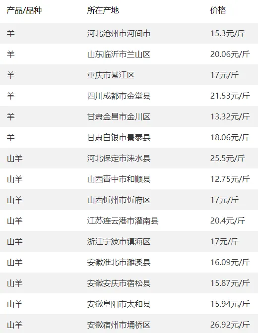 4. 内蒙古临河屠宰场羊价大涨,公羔羊胴体一等羊报价涨至61元/公斤,单日涨幅1元/公斤。