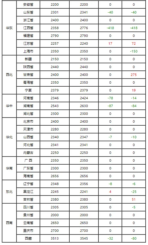 现货市场区域分化显著,全国各省市报价有涨有跌,均价整体平稳。其中福建涨幅居前,较昨日上涨59元/吨;山西跌幅最大,下跌62元/吨;新疆报价最高,达3545元/吨,广东、北京报价较低,均为2897元/吨。
