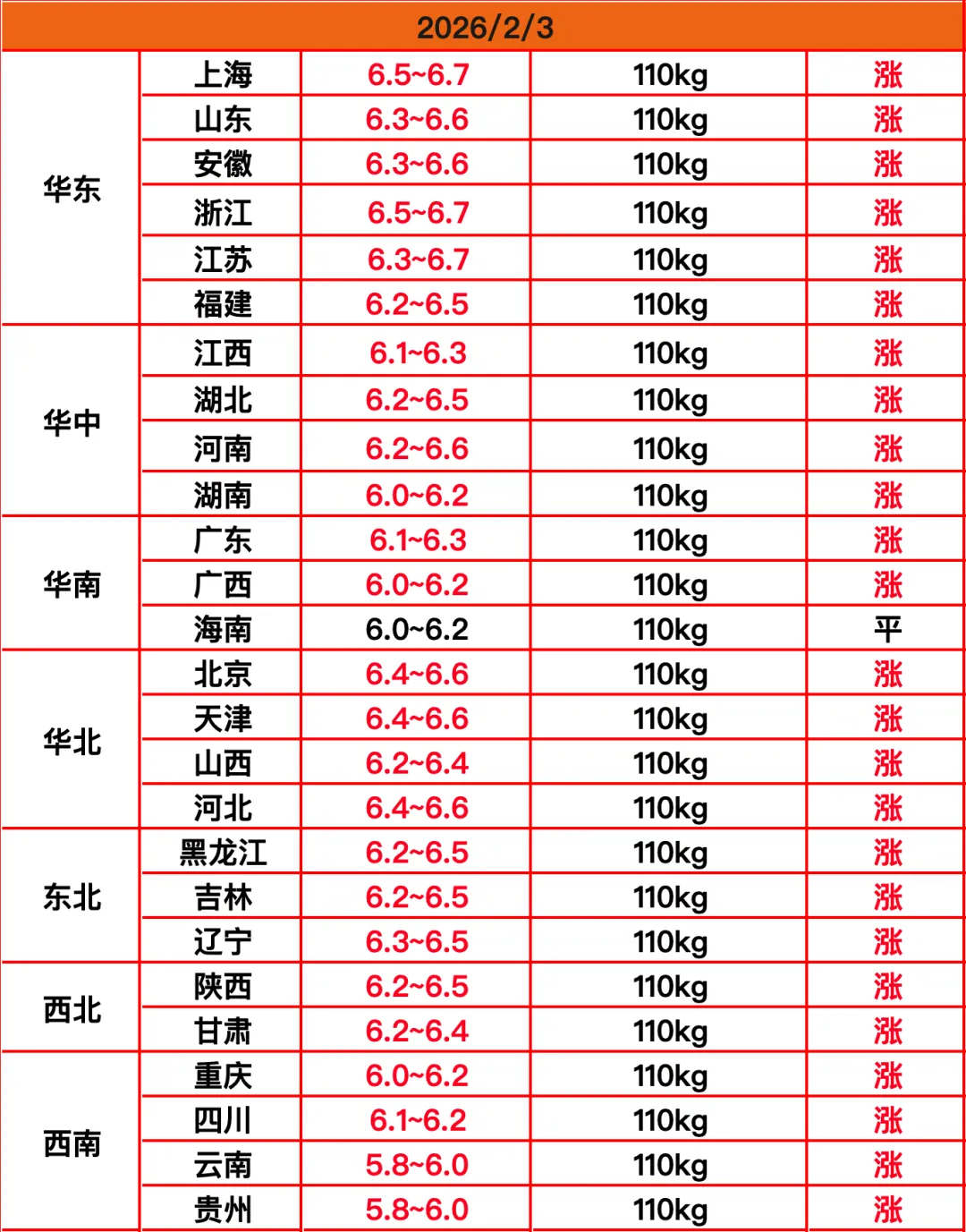 与此同时,由于养殖端出栏量减少,屠宰企业压价的难度直线上升,加上他们自身也有一定的备货需求,所以今天没有任何一个地区下跌。