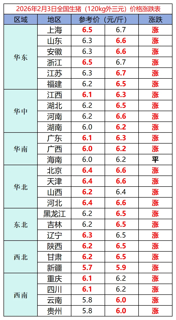 今日猪价 | 2026.2.3 猪价全线飘红,备货预期点燃市场情绪
