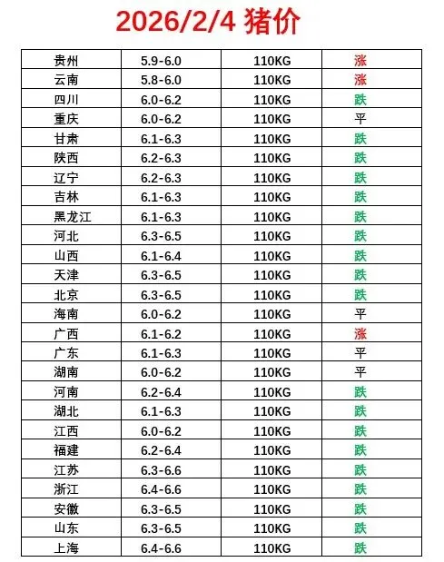 2026.2.4猪价 养羊网 2026-02-04 2026.2.4猪价关注主播,每天准时报价进养猪学习群加微信15656542232 养羊网 2026-02-04 上一篇:【养猪行情】2026.02.04-猪价行情! 下一篇:【明天猪价】 2026. 02. 04 全国最新猪价 您可能还会对下面的文章感兴趣111: 相关文章 才30岁,就在深圳过上种地放羊的生活 广东东莞生猪源头批发 武汉羊羔养殖 2025年4月13日全国各地生猪价格信息