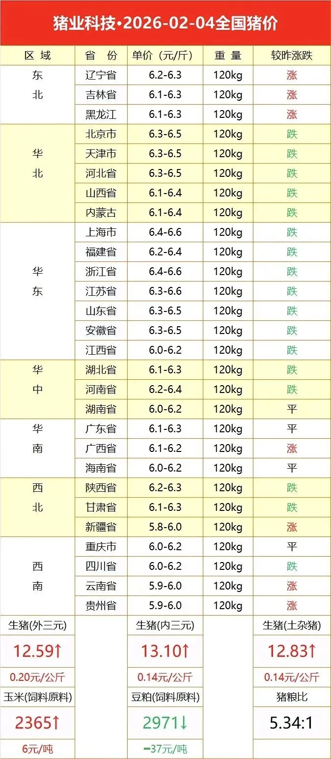 大众报价:2026.02.04全国猪价