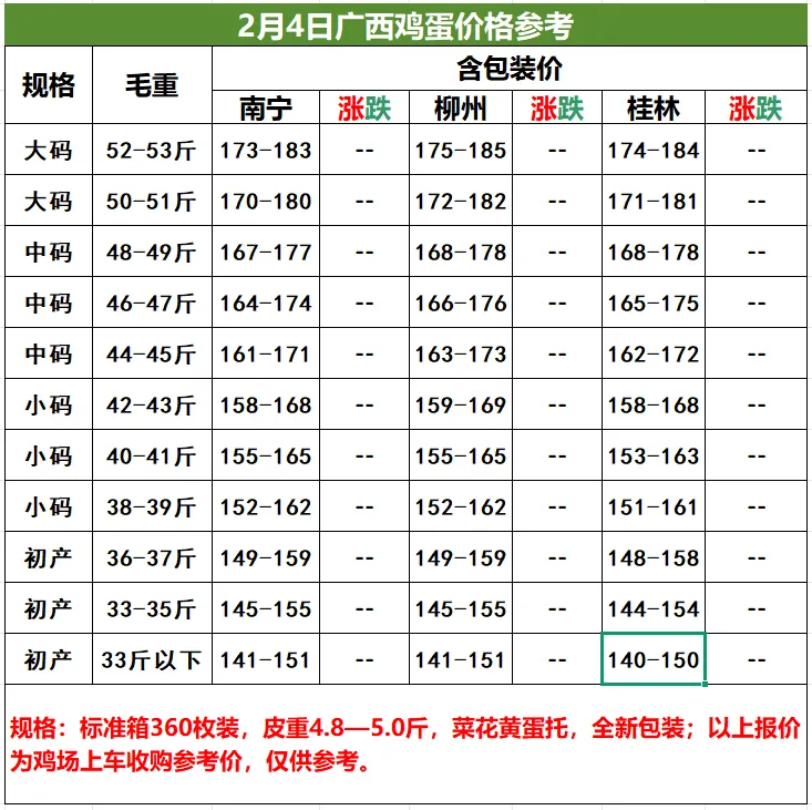 2月4日桂林、柳州、南宁鸡蛋价格参考