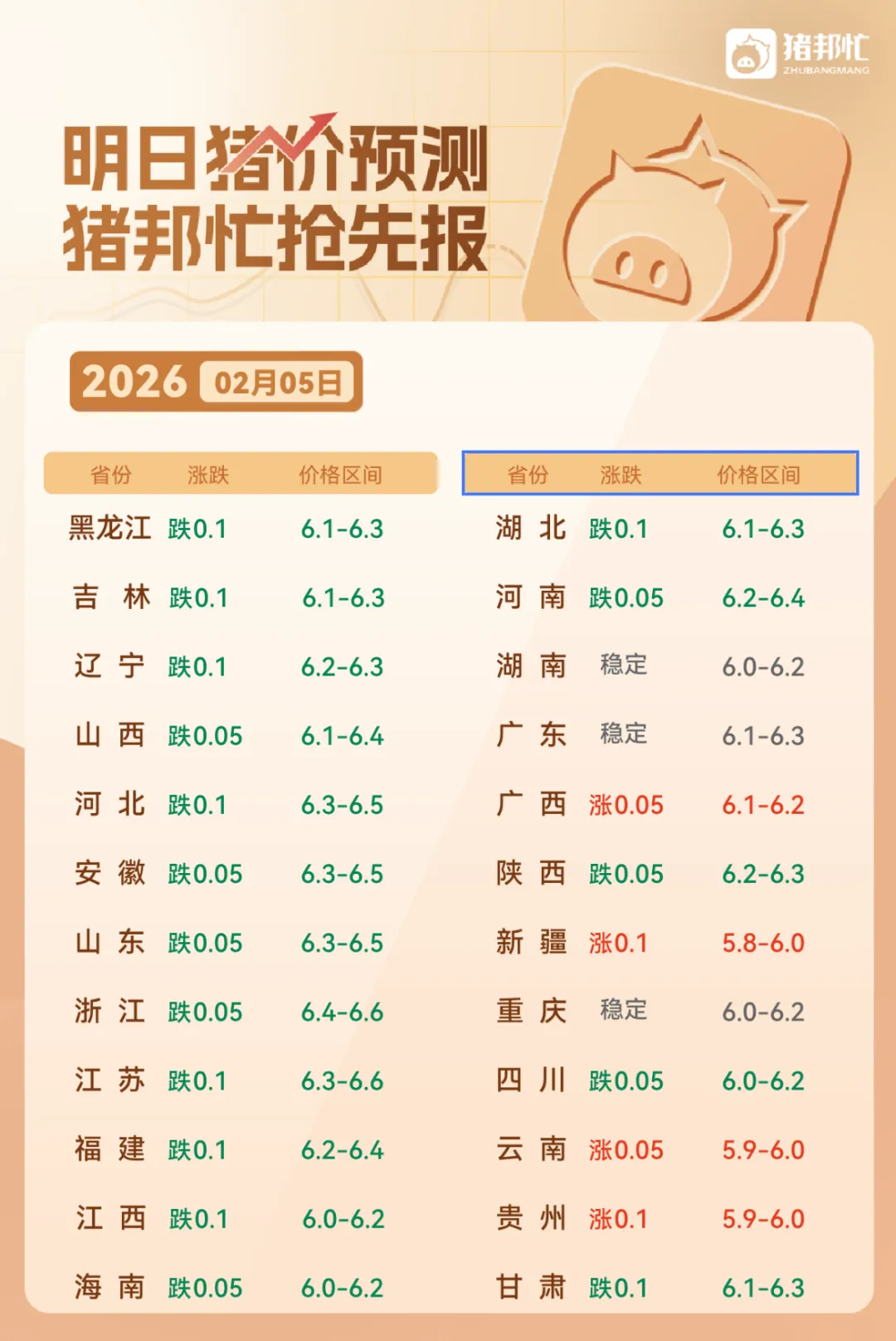 【明日猪价】2026.02.05:猪价出现回落!!!