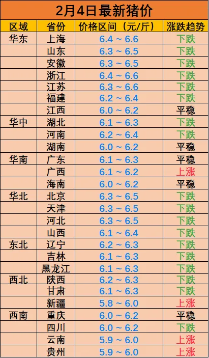2月4日最新猪价!!一夜降温,止涨转跌!!