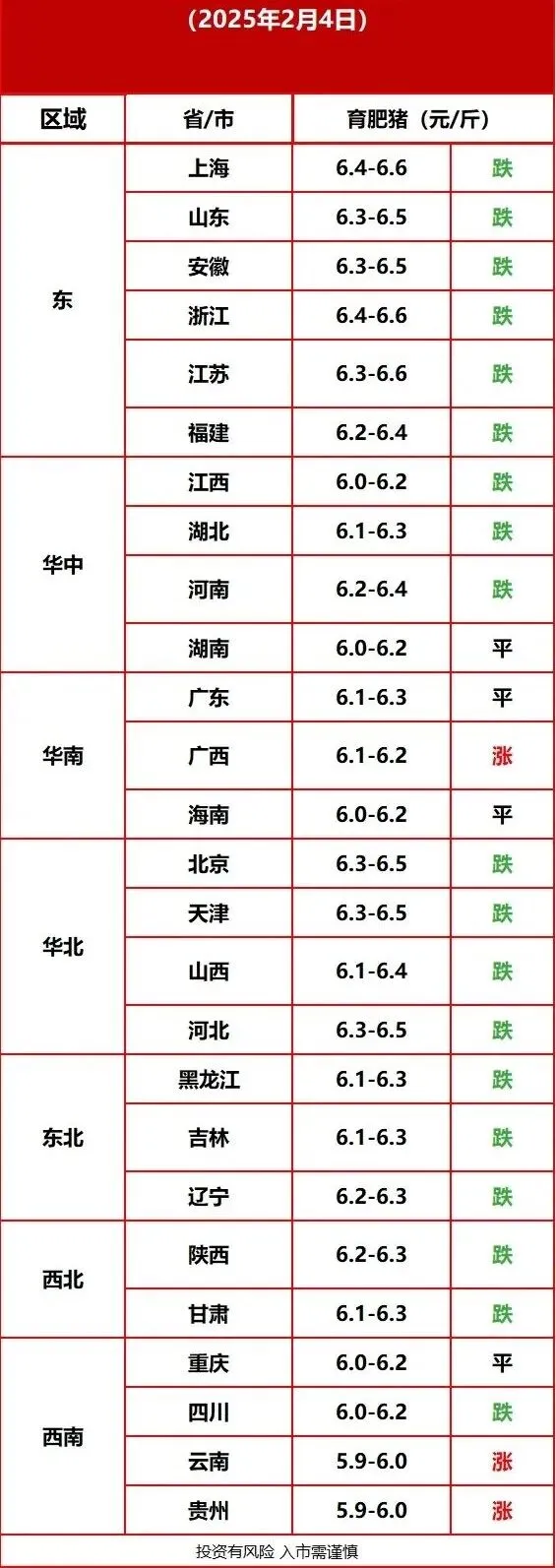 2月4日猪价大部分地区回落 养羊网 2026-02-04 2月4日猪价大部分地区回落每日猪价行情2月4日猪价大部分地区回落 已关注 关注 重播 分享 赞 视频详情 www.chinabreed.com中国养殖网 养羊网 2026-02-04 上一篇:猪价丨2月5日 明日猪价早知道 下一篇:2月4日东莞信立农批鸡蛋价格 您可能还会对下面的文章感兴趣111: 相关文章 2025年12月7日全国各地生猪价格信息 盘点中药材涨跌最厉害的品种 鸡蛋与红枣:一个不出意外,一个果然意外! 宇韩财经说|套利