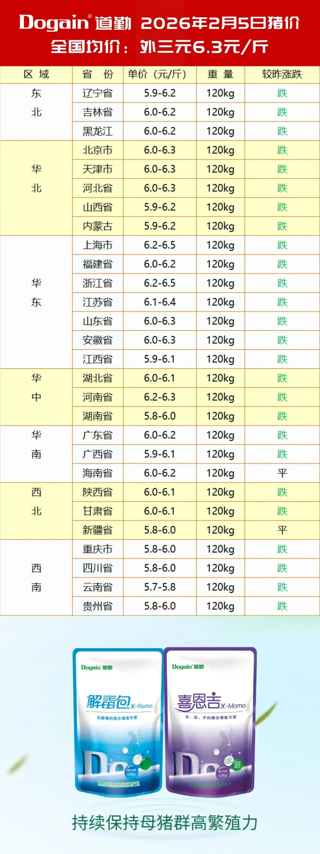2月5日,猪价信息 养羊网 2026-02-04 2月5日,猪价信息 养羊网 2026-02-04 上一篇:【华中猪价】26.2. 5 全国猪价!! 下一篇:2月5日 全国猪价早知道! 您可能还会对下面的文章感兴趣111: 相关文章 2025年4月13日全国各地生猪价格信息 迷你山羊? 行业追踪-猪肉 1月15日贵州鸡蛋价格