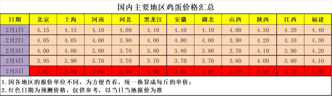 ? ? 鸡蛋预测价格仅供参考,实际价格以当地当日的报价为准。