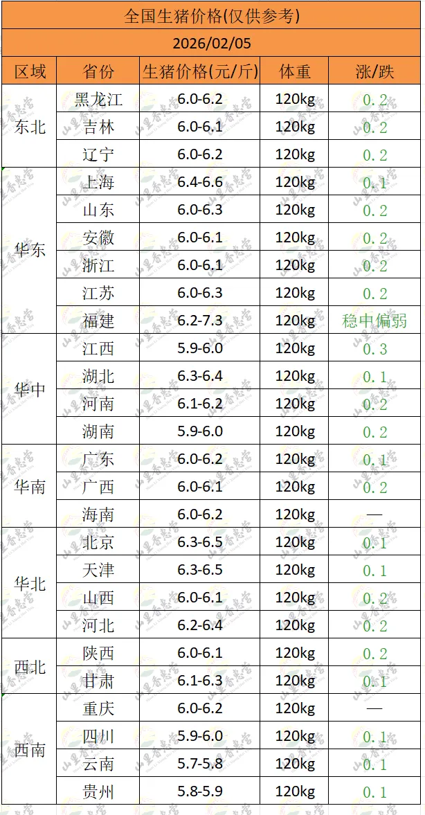 全国各地明日猪价(2026.02.05)-山里香惠营