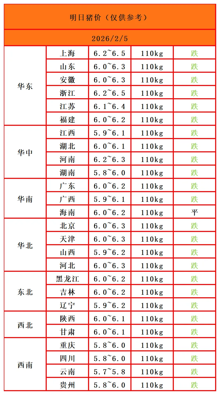 1、整体来看,全国生猪价格呈现大部下跌态势。集团猪场生猪成交价格呈现大部下跌态势,东北、西北、华北、华中、华东、西南、华南地区集团猪场猪价均呈现大部下跌态势。华东、华中地区龙头集团110-125公斤生猪价格下跌0.45-0.8元/公斤,125-140公斤生猪价格下跌0.2-0.5元/公斤,龙头集团猪价呈现大部下跌态势。从养殖集团生猪上市量来看,华中、华东、西北、西南地区集团生猪上市量有所增加。