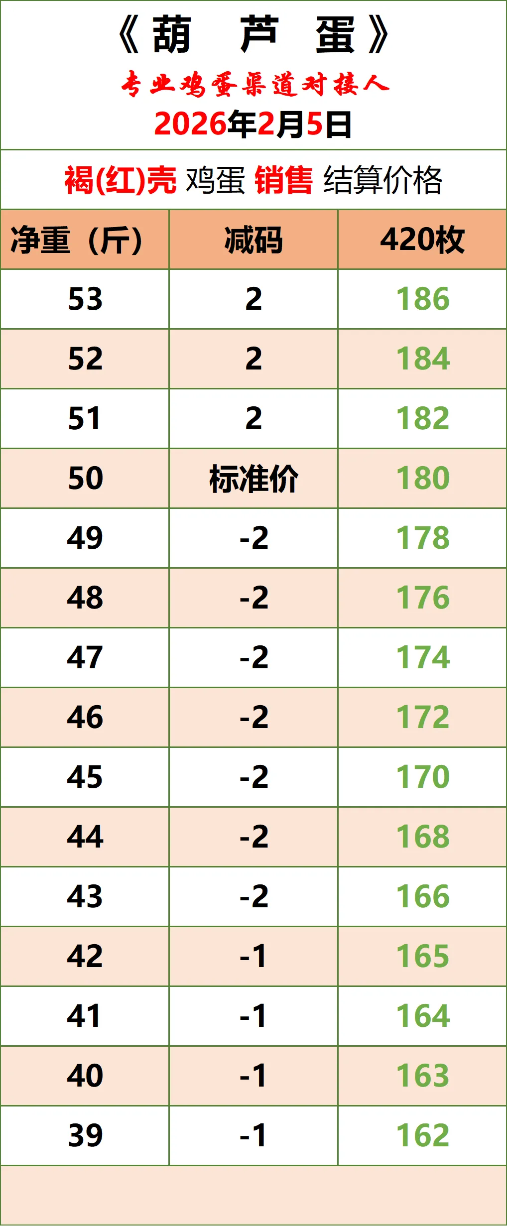 4、养殖场、贸易商日产量150件以上,可大车(至少6.8一车)直发的,支付合理信息维护服务费后,可按以上成交价格对接渠道,详情可来电约谈。