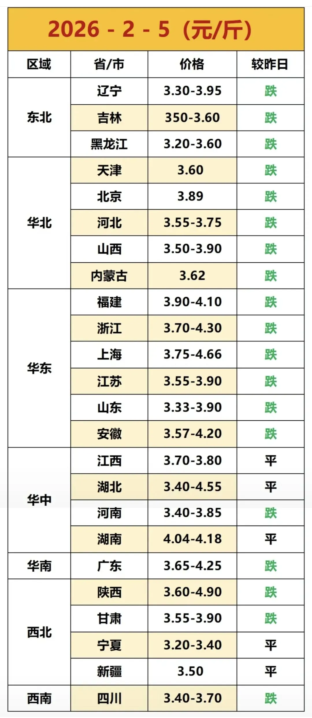 2026年2月5日全国鸡蛋价格最新走势 ? ? ? 全国鸡蛋最新价格参考: