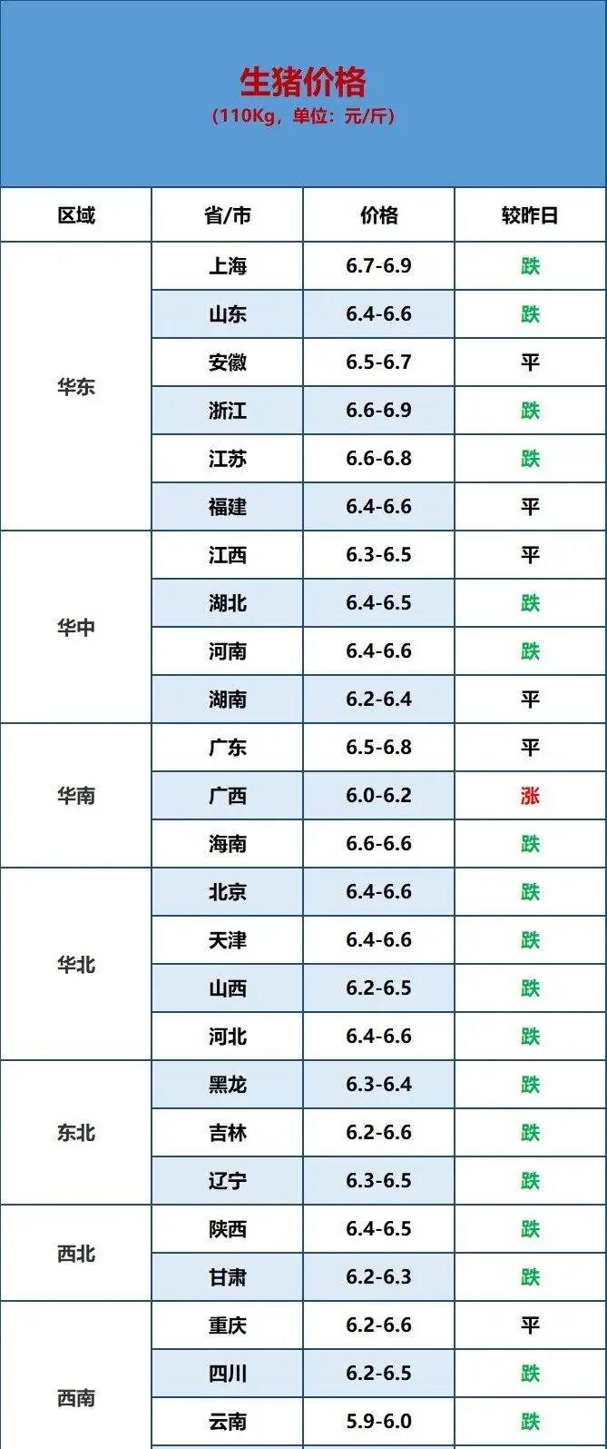 2026.2.6明日最新猪价! 养羊网 2026-02-05 2026.2.6明日最新猪价!猪价日评:今天猪价偏弱震荡。中国主流市场出栏外三元、内三元及土杂商品大猪加权日均价趋稳,全国生猪出栏加权日均价12.95每公斤,较昨日价格上涨0.01%。北方节前集中出栏致供应激增、价格下探,南方靠春节备货支撑稳中有涨。短期行情震荡为主,1 月下旬或小幅反弹。 养羊网 2026-02-05 上一篇:2026.2.6明日最新猪价! 下一篇:【明天猪价】 2026. 02. 06 多地再次上涨! 您可能还会对下面的文章感兴趣111: 相关文章 怎么成为千万富翁? 近期价格更新!!! 北京大量定采鸡蛋,出售鸡蛋 2025年4月13日全国各地生猪价格信息