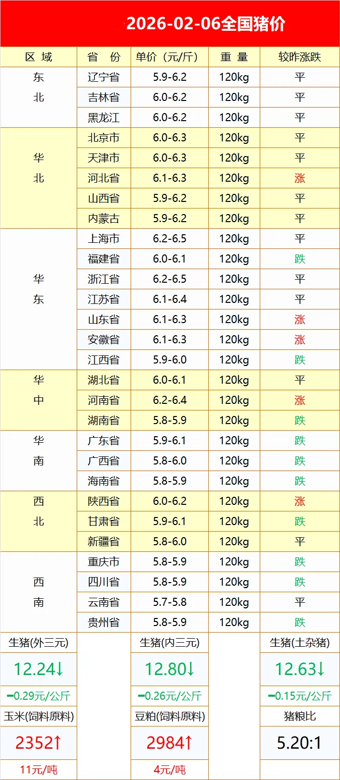 山东慧丰源2月6日猪价行情 养羊网 2026-02-06 山东慧丰源2月6日猪价行情 养羊网 2026-02-06 上一篇:猪价 | 2026.2.6~最新猪价 下一篇:2026年2月6日山东鸡蛋价格实报 您可能还会对下面的文章感兴趣111: 相关文章 【养猪行情】2026.01.22-猪价行情 【明天猪价】 2026. 01. 22 全面下跌!北方局部跌幅放缓! 2025年4月13日全国各地生猪价格信息 近期价格更新!!!