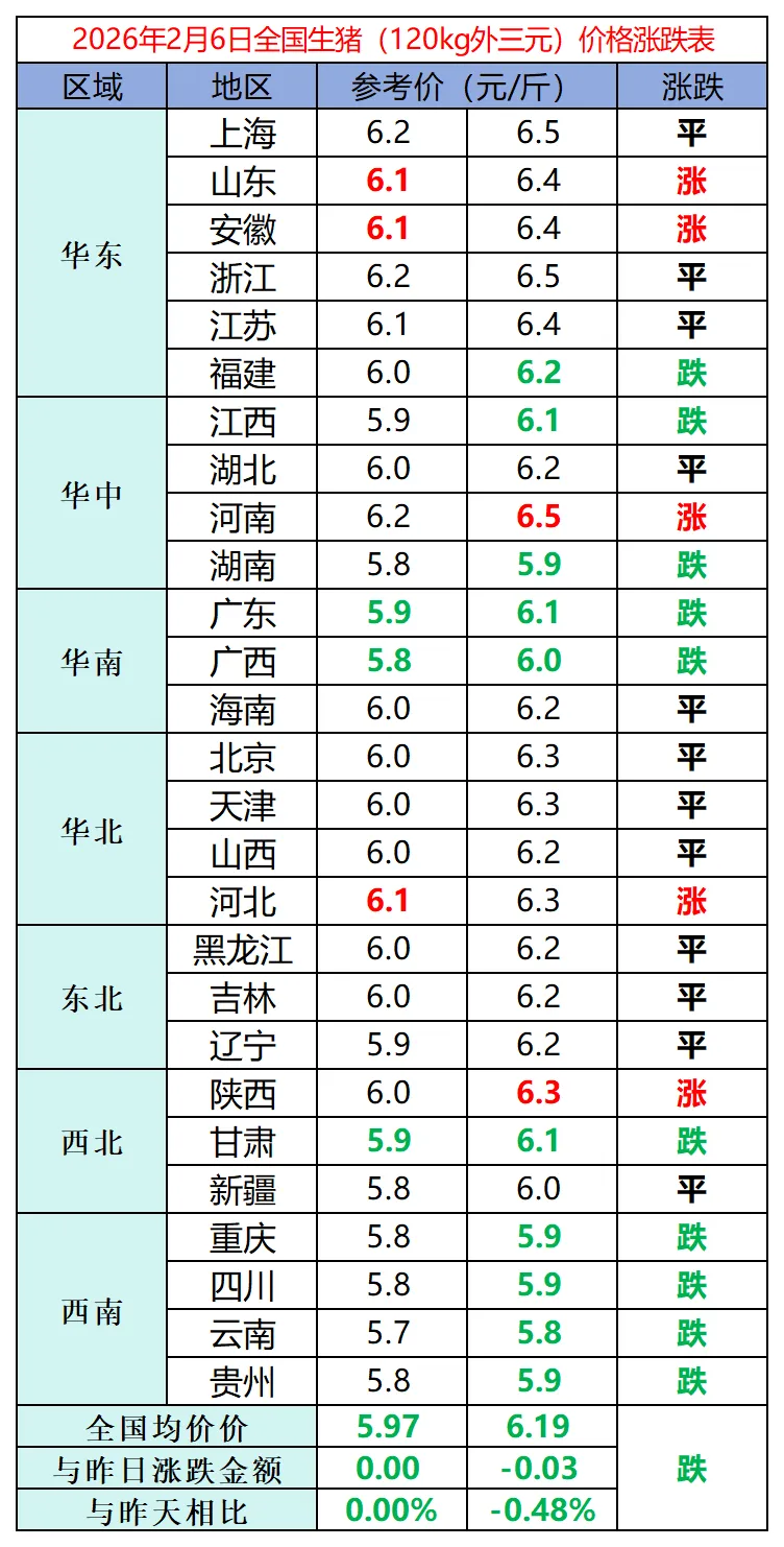 今日猪价 | 2026.2.6 “旺季不旺”加剧:节前集中出栏遇冷,猪价底部震荡寻支撑