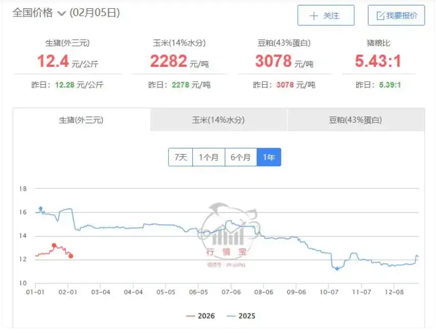截至2月5日,2025年至今的猪价走势。