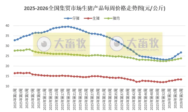 全国仔猪平均价格26.87元/公斤,比前一周上涨3.5%,同比下跌23.2%。