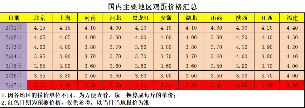 ? ? 鸡蛋预测价格仅供参考,实际价格以当地当日的报价为准。