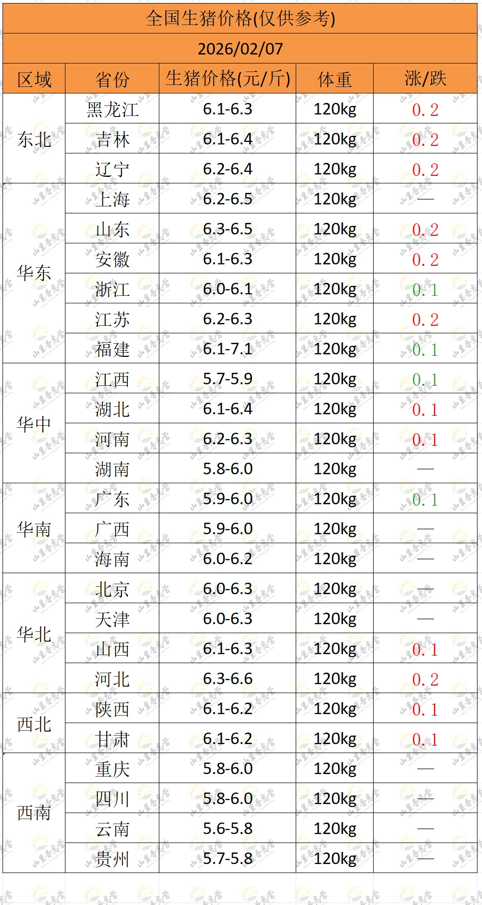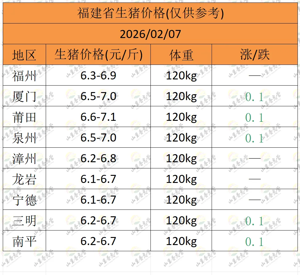 全国各地明日猪价(2026.02.07)-山里香惠营