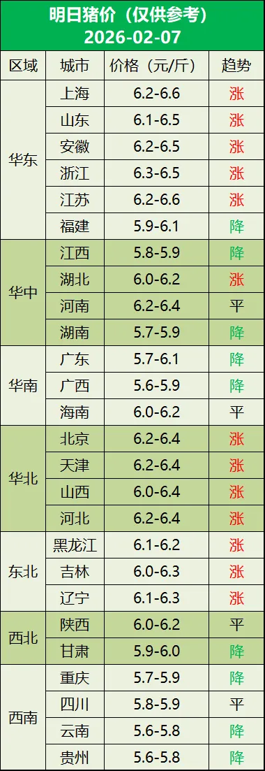 明日猪价(2026年02月07日) 养羊网 2026-02-07 明日猪价(2026年02月07日) 养羊网 2026-02-07 上一篇:今日猪价(2026.2.7 ) 下一篇:2026.2.7 广东省明日猪价 您可能还会对下面的文章感兴趣111: 相关文章 真的拍到了光伏羊? 2025年10月6日全国各地生猪价格信息 2025年4月13日全国各地生猪价格信息 法律和上帝一起助纣为虐,把穷人吃干抹净