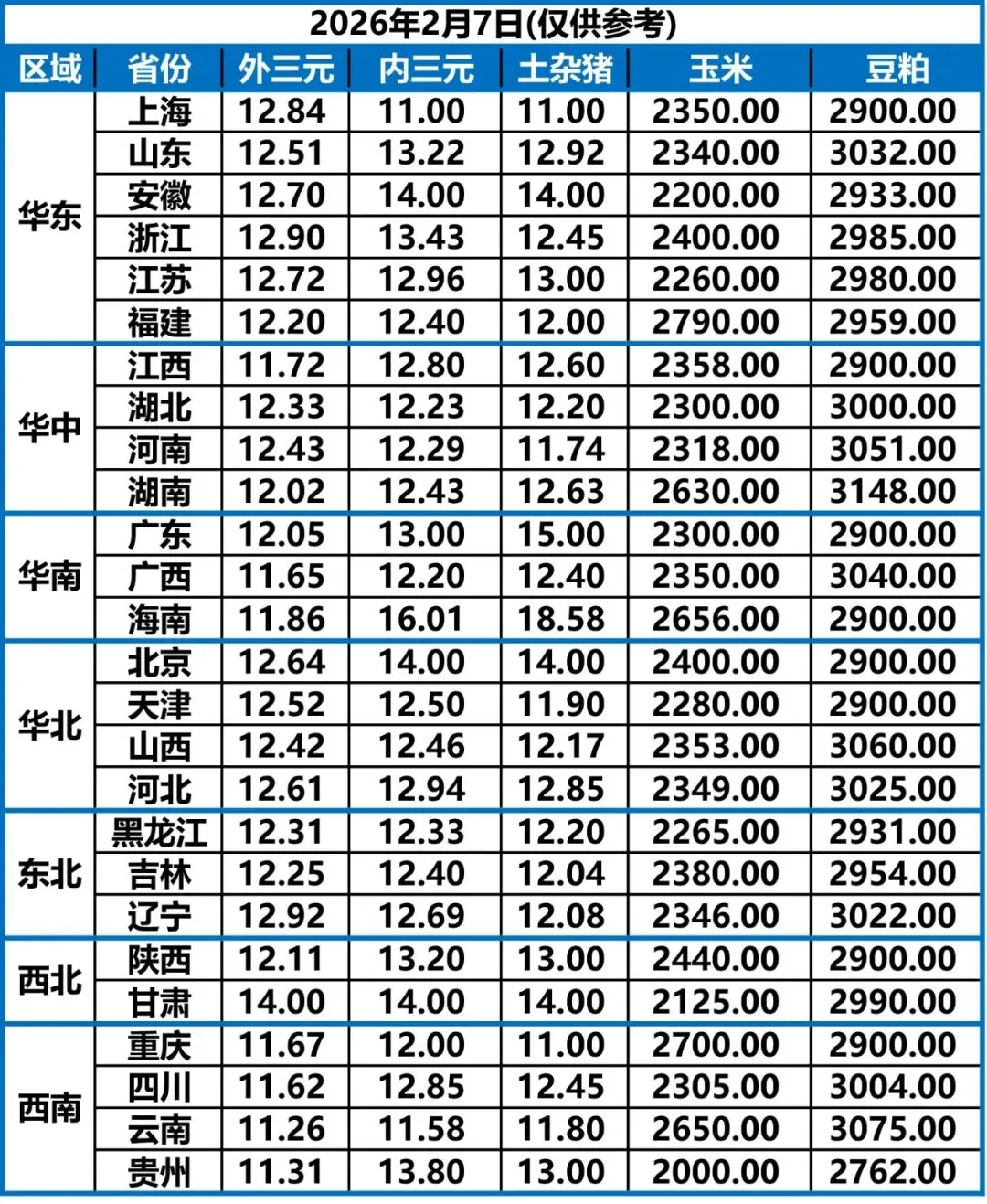 2月7日 | 正业生物猪价快报!