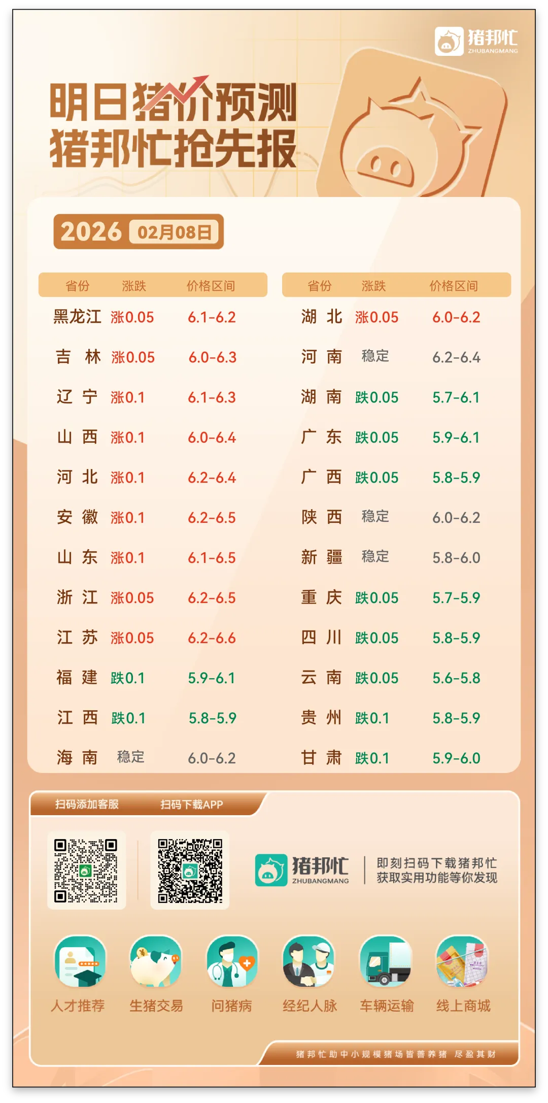 【明日猪价】2026.02.08:猪价涨跌互现!!!