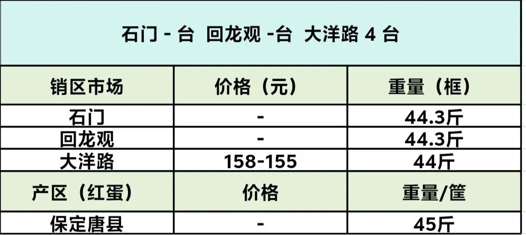 大洋路鸡蛋价格2026年 2 月 7 日报价 养羊网 2026-02-07 大洋路鸡蛋价格2026年 2 月 7 日报价停更通知:本公众号明日起暂停更新,自北京2月7日(农历腊月二十)至正月初六,相关合作议价成交、自由对接;2月23日(正月初七)恢复开市定价,届时将持续为大家发布北京市场相关资讯。感谢各位同仁一路支持与关注,敬请期待复更! 养羊网 2026-02-07 上一篇:【2026.2.7】今日威县鸡蛋价格 下一篇:2月7日桂林、柳州、南宁鸡蛋价格参考 您可能还会对下面的文章感兴趣111: 相关文章 2025年4月13日全国各地生猪价格信息 2025年4月13日全国各地生猪价格信息 1月8日全国最新鸡蛋价格:前扑后勇,扶摇直上. 2026.01.14鸡蛋价格行情