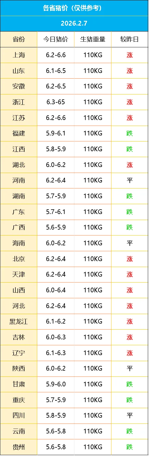 各省猪价(仅供参考)