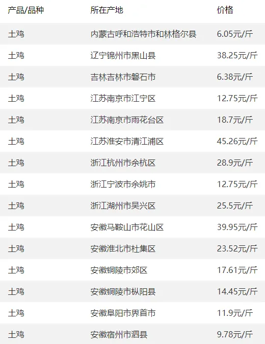 肉鸡、土鸡、鸡苗、鸡蛋等今日报价