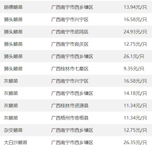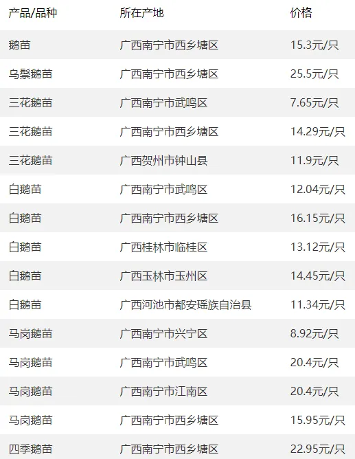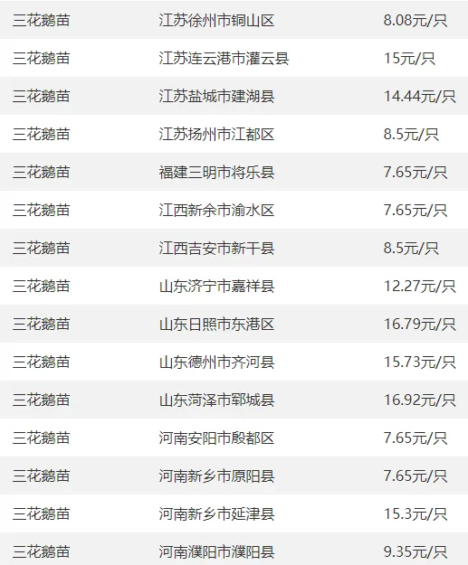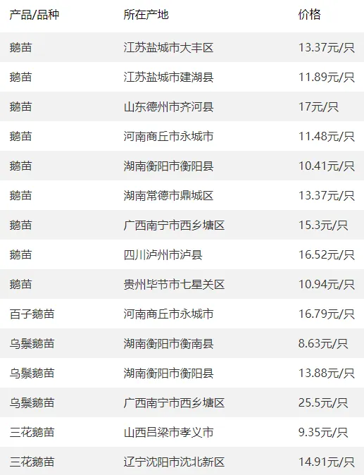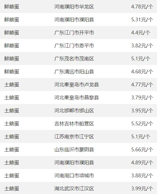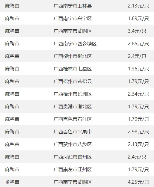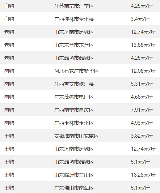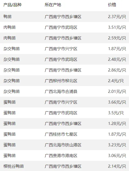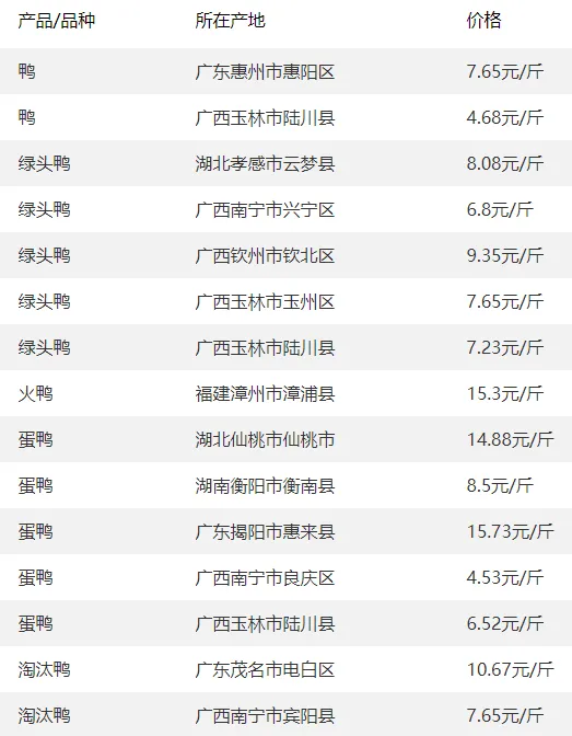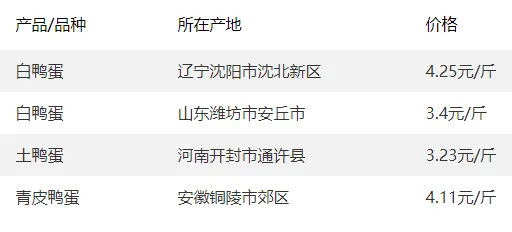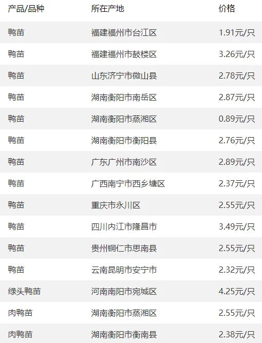 活鸭、鸭苗、鸭蛋、鹅苗等今日报价参考