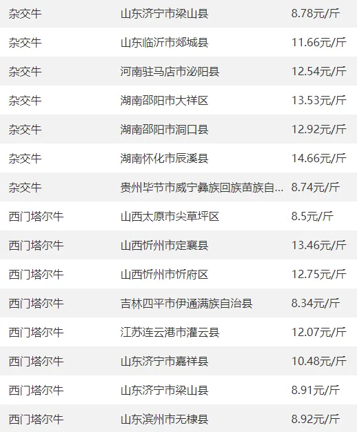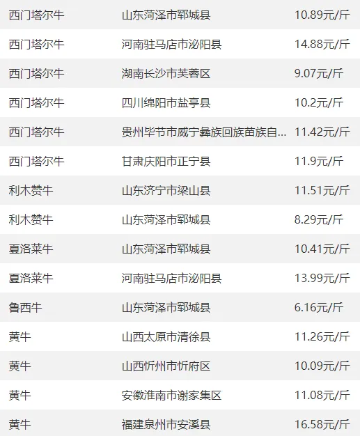 6. 优质西门塔尔育肥公牛溢价显著,报价较普通品种高出1-2元/斤,市场认可度持续提升。