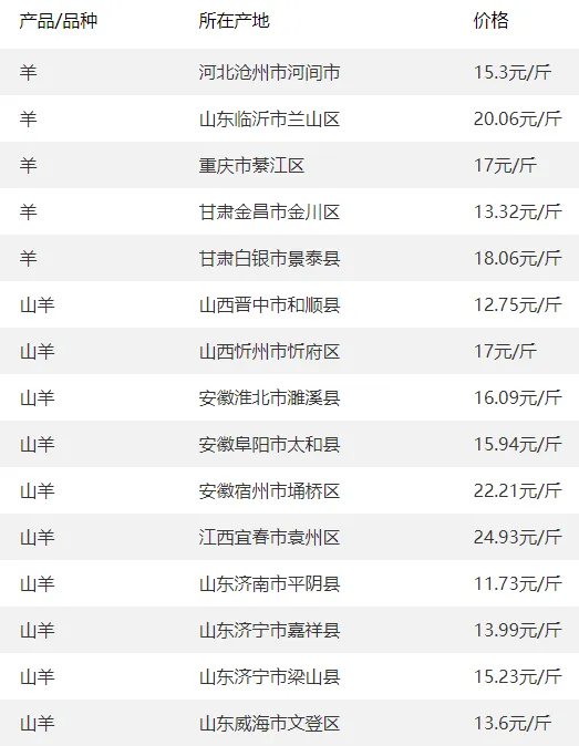 2. 全国活羊行情分化,绵羊均价18.01元/斤微涨,山羊均价16.92元/斤小幅回落,优质羊源紧缺议价空间消失。