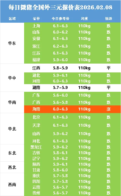 明日最新猪价2026.02.08点击蓝字关注 猪价不错过