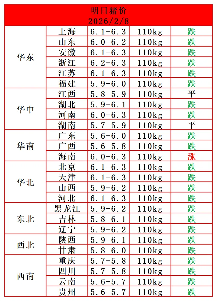 2026.2.8-今日最新猪价 养羊网 2026-02-08 2026.2.8-今日最新猪价 养羊网 2026-02-08 上一篇:贵州百顺集团鸡蛋价格:2月8日;踩踏式出货,含泪清仓!!! 下一篇:2026年2月8日猪价!全线飘绿!春节前“跌”声一片,还能翻红吗? 您可能还会对下面的文章感兴趣111: 相关文章 现在外面的物价都这么高了吗 避雷盐农职业学院门口的鸡蛋饼!!! 定州创业真难 有没有同感的小伙伴? 京东除夕中奖的鸡蛋为什么有塑料味啊