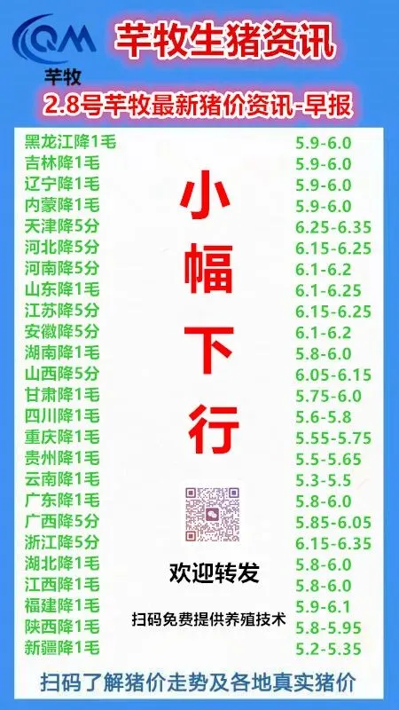 2026年2月8号芊牧最新猪价资讯-早报(小幅下行) 养羊网 2026-02-08 2026年2月8号芊牧最新猪价资讯-早报(小幅下行) 养羊网 2026-02-08 上一篇:2026年02月08日猪价播报 下一篇:2.8明日猪价早知道,2.8全国最新猪价信息 您可能还会对下面的文章感兴趣111: 相关文章 近期价格更新!!! 辛辛苦苦下的蛋,听说下午就涨价了? 2025年4月13日全国各地生猪价格信息 二刷聊城三上山??(附价格)