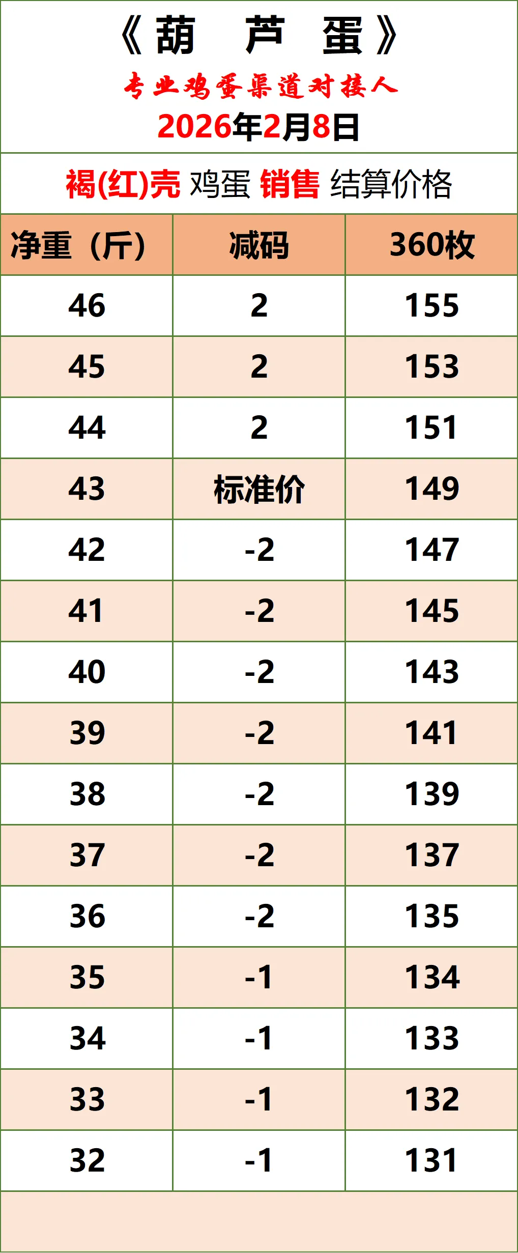 2026年2月8日《葫芦蛋》鸡蛋价格