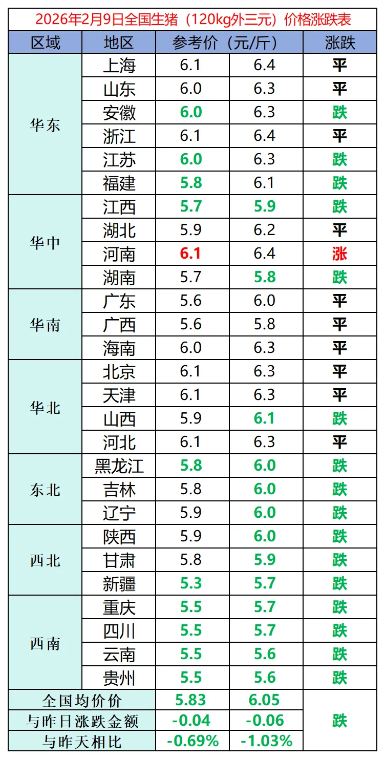 今日猪价 | 2026.2.9 小年前夕猪价失守12元/公斤关口,传统旺季预期再度落空