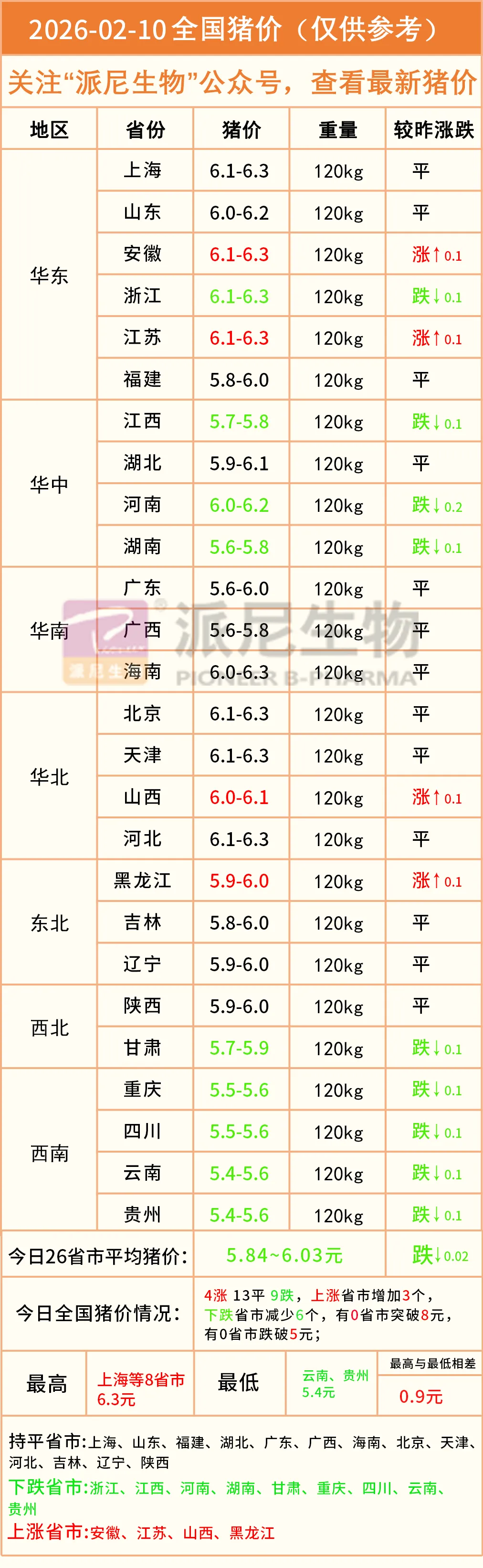 明日猪价——2026年2月10日全国生猪价格! 养羊网 2026-02-09 明日猪价——2026年2月10日全国生猪价格! 养羊网 2026-02-09 上一篇:2月猪价反转原因及市场走势分析 下一篇:明日猪价|2026.02.10 湖南跌 您可能还会对下面的文章感兴趣111: 相关文章 猪价反常6连跌,多地一夜下跌近3毛!春节前警惕一大风险… 近期价格更新!!! 坡坡的鸡蛋和蔬菜也可以很便宜 利润大到吓人的农村生意一个月挣2-3万