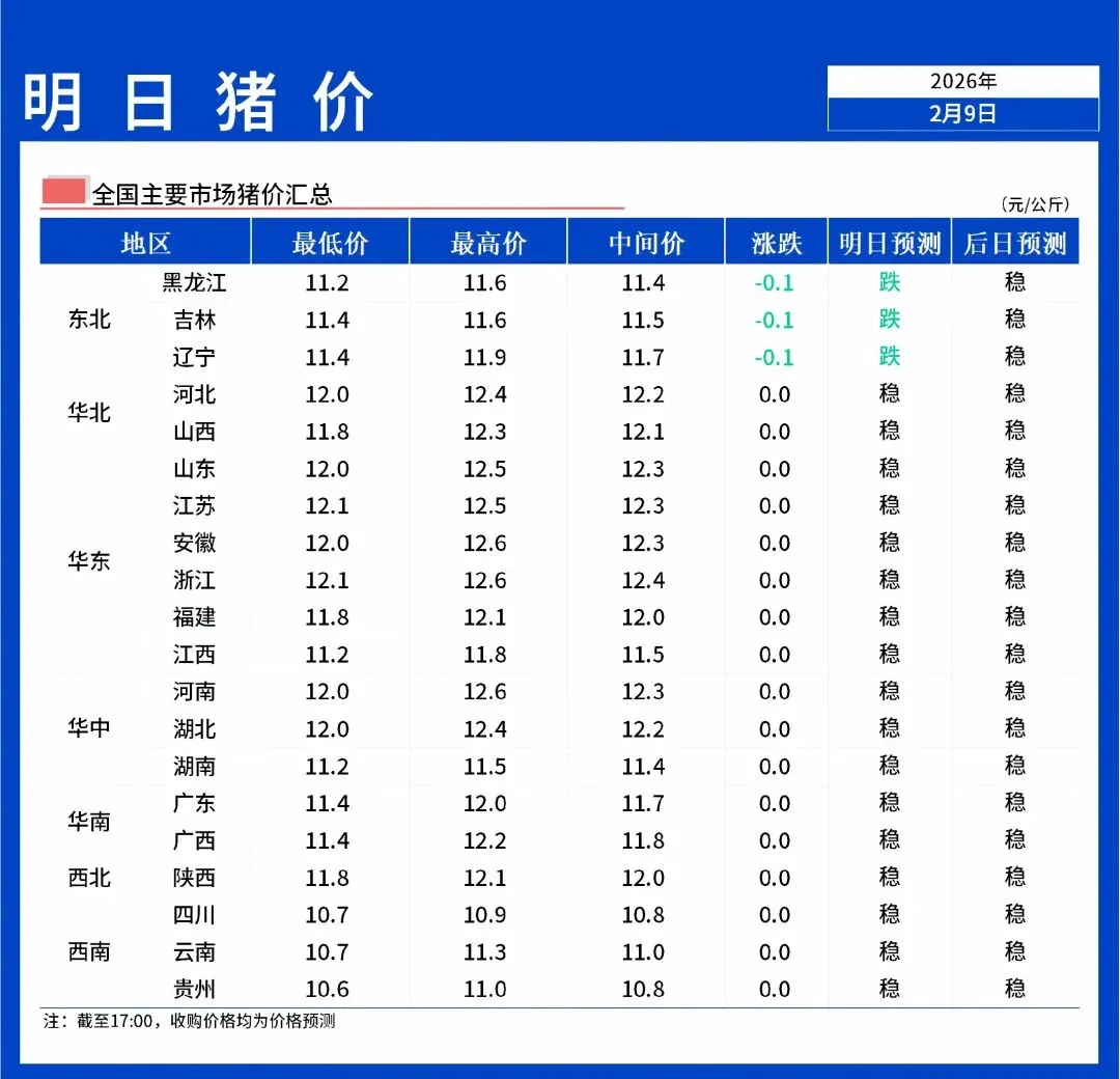 【明日猪价】2月10日全国猪价弱稳为主!