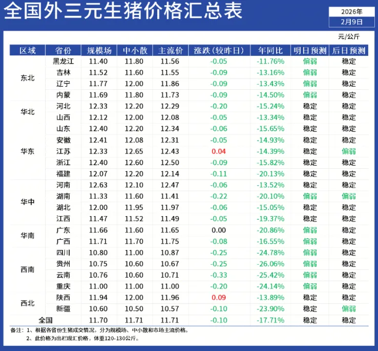Mhy20260209生猪晚评:节后猪价继续暴跌