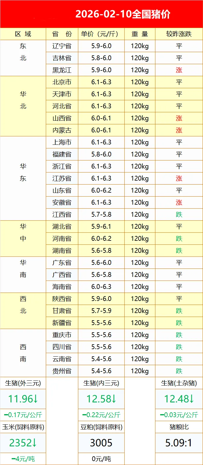 山东慧丰源2月10日猪价行情 养羊网 2026-02-10 山东慧丰源2月10日猪价行情 养羊网 2026-02-10 上一篇:每日猪价 2026年2月10日 下一篇:2026.2.10鸡蛋价格 您可能还会对下面的文章感兴趣111: 相关文章 云贵川?带父母逛吃半月游 呼伦贝尔小肥羊,吃过的盆友又来找我啦 2026.1.14猪价快讯--福州穗丰动保 今日猪价——2026年2月4日