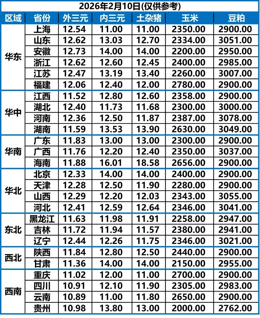 2月10日 | 正业生物猪价快报!