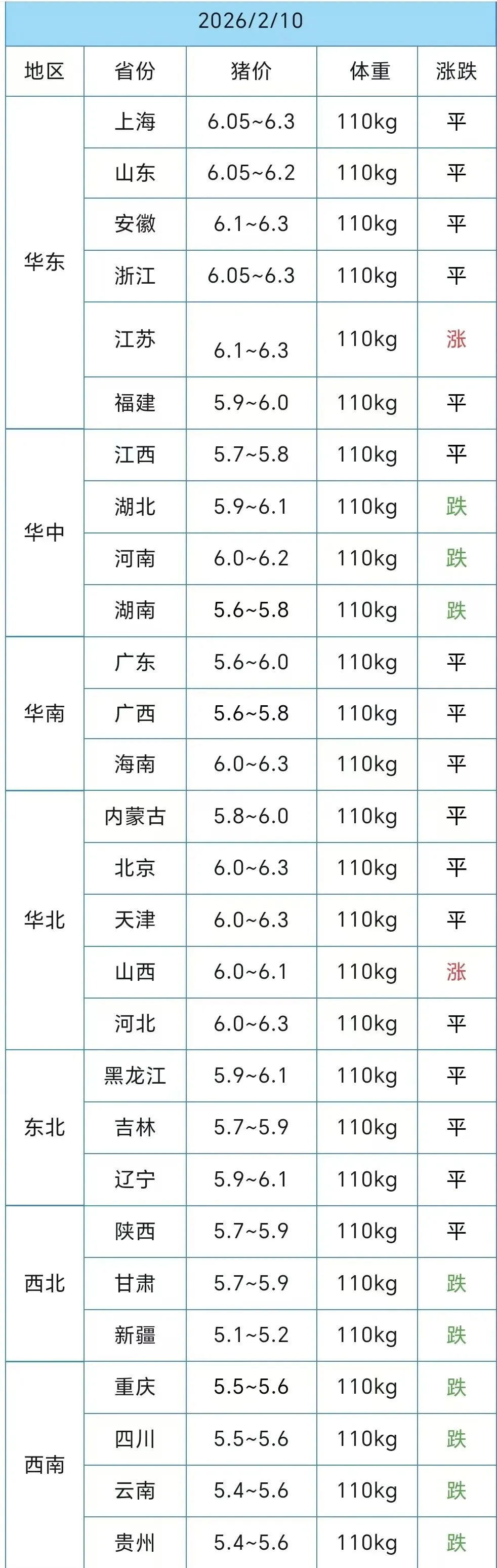 2026-02-10今日猪价 养羊网 2026-02-10 2026-02-10今日猪价 养羊网 2026-02-10 上一篇:小年备货未能有效提振市场,短期猪价或维持弱势震荡 下一篇:重发--鸡蛋各重要节点现货价格情况 您可能还会对下面的文章感兴趣111: 相关文章 2025年4月13日全国各地生猪价格信息 2025年4月13日全国各地生猪价格信息 千万不能让我爸看见!这也太厉害了! 2025年4月13日全国各地生猪价格信息