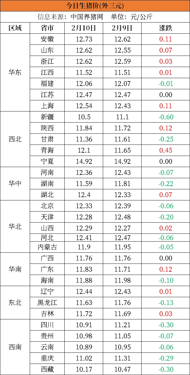 【2月10日猪价】供应压力凸显,猪价区域分化窄幅震荡