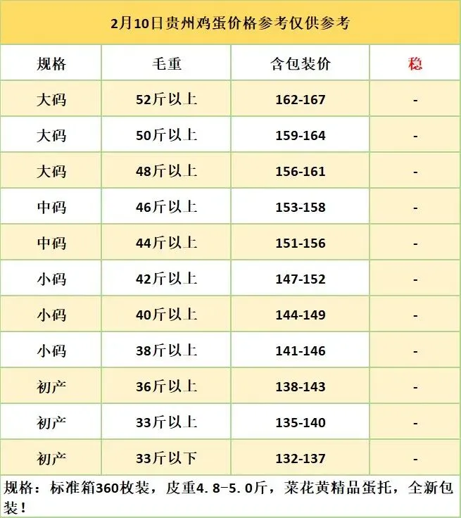 2月10日贵州鸡蛋价格参考