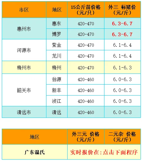 APP报价 -10日 广东猪价行情03【招聘】:广东省江门市新会区崖门镇裕丰农场,招聘岗位:1、育肥饲养员,需有养猪或猪场工作经验 ;2、果园管理员,有果树种植及护理经验优先;以上岗位要求年龄50以下。包食宿,有空调、有Wi-Fi,工资:高薪招聘面谈。联系人:陈老板18046997886、陈总19928159963,联系时,请说明猪天下网。