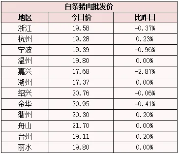 二、浙江省白肉批发价 据浙江放心肉商情网样本屠宰企业监测数据统计 (单位:元/公斤)