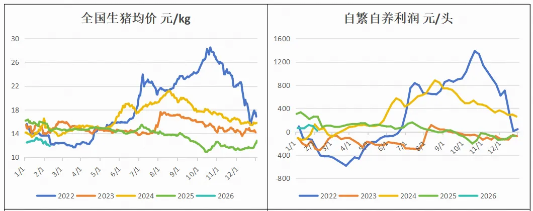 中长期看,通过政策+亏损驱动,能繁存栏10-11月大幅去化,12月产能去化暂时停止。考虑到生产效率提高,目前能繁产能仍然过剩,2026年上半年仍需要继续亏损实现去产能。