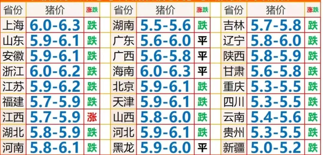 今日全国猪价(跌) 养羊网 2026-02-10 今日全国猪价(跌)2月10日猪价 养羊网 2026-02-10 上一篇:2026.2.10全国鸡蛋价格最新报价行情参考,2.10鸡蛋价格今日价全国走势 下一篇:阿斌猪价2026.02.11(最新猪价) 您可能还会对下面的文章感兴趣111: 相关文章 蟒蚺养殖基地初建成 鸡蛋挑选有妙招! 2026年1月6日-鸡蛋价格 牧场游戏需不需要规避卖肉的环节?