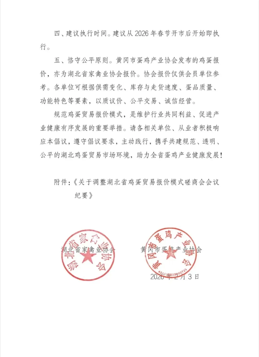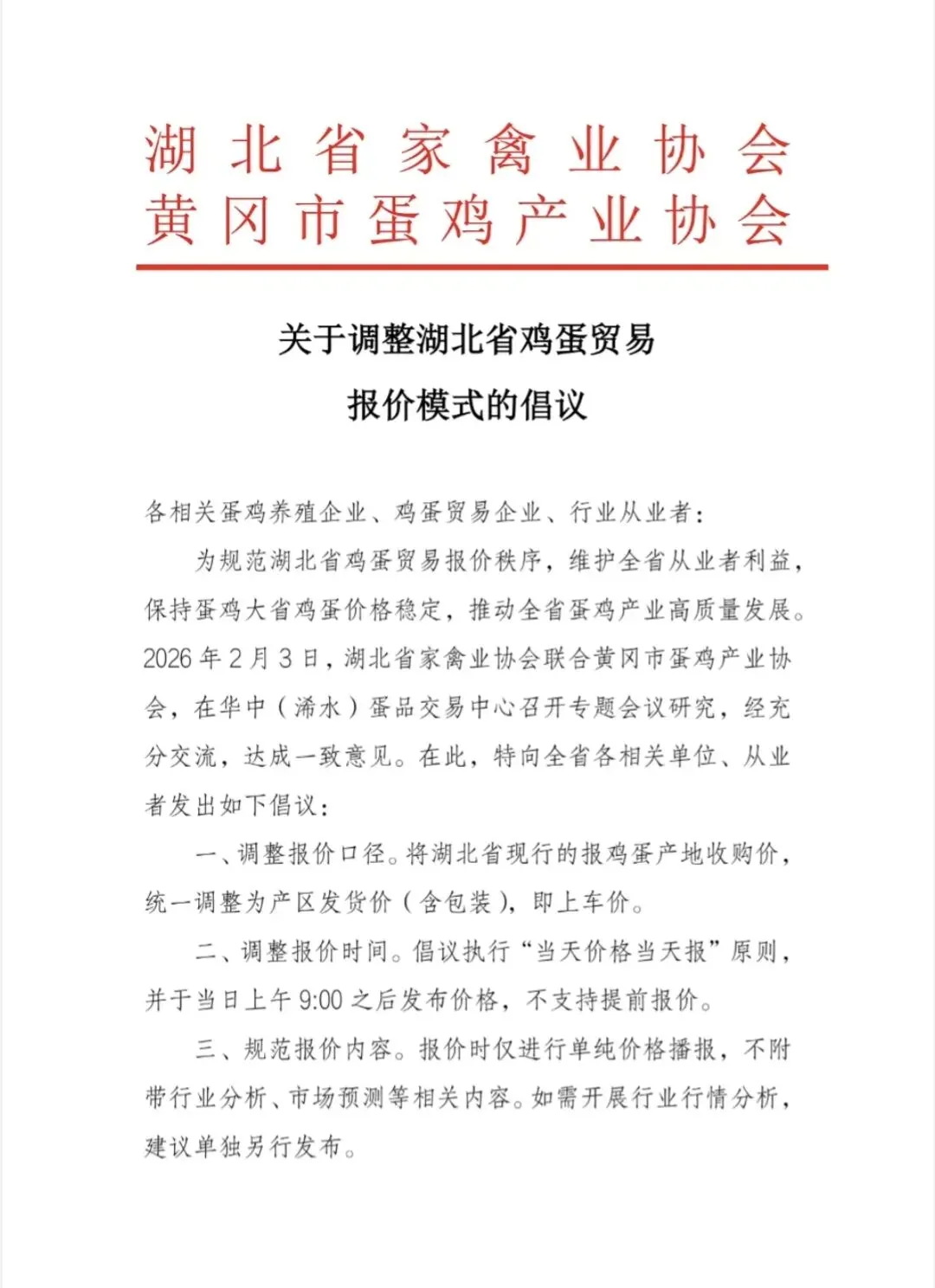 调整湖北鸡蛋报价模式倡议书 养羊网 2026-02-11 调整湖北鸡蛋报价模式倡议书 养羊网 2026-02-11 上一篇:小年之后,鸡蛋的价格 下一篇:新联黑鸡蛋报价-2月11日 您可能还会对下面的文章感兴趣111: 相关文章 顾客朋友介绍,订羊一只!! 一张图了解三大猪企 2026年1月8日鸡蛋价格行情参考 怎么成为千万富翁?